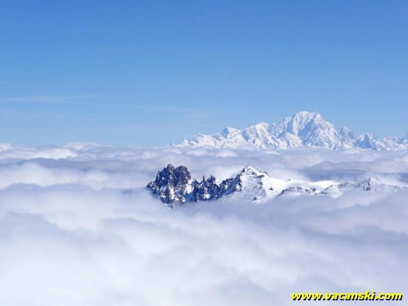 In de ochtend wat in Menuires en Mottaret geskied, Méribel en Courchevel lagen in de wolken.